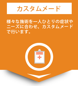 多くの方により満足して頂けますよう様々な施術を一人ひとりの症状やニーズに合わせ、カスタムメードの全身的ケアを行います。