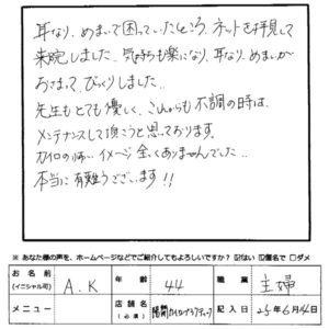 以前に頂きました、耳鳴り、めまいの患者さんからの感想をご紹介します。