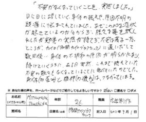 「不安がなくなっていくことを実感しました。」