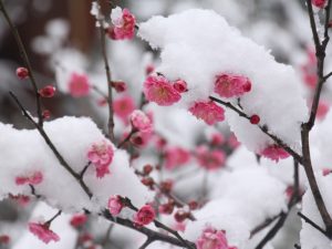 自然界では、雪の下で植物が芽吹き出し、梅のつぼみも膨らみだし、春の準備が始まっています。